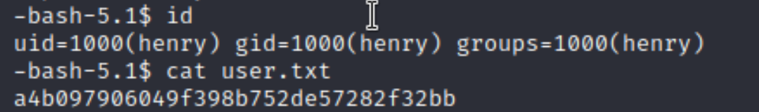\uid=1000(henry) gid=1000(henry) euid=0(root) egid=0(root) groups=0(root),1000(henry)