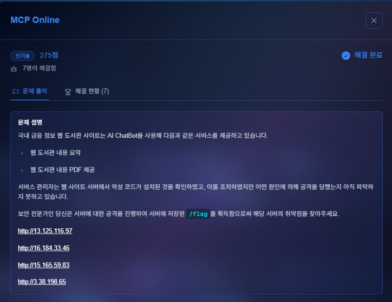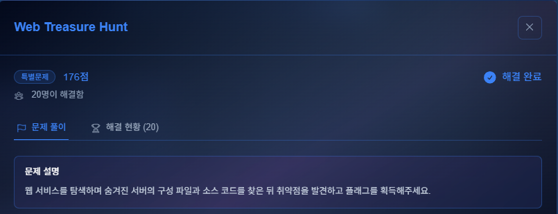 (6위)를 달성해서 만족스러운 결과가 나왔습니다. 제가 푼 문제들만 올렸습니다. 내년에는 리버싱 공부도 꾸준히하여 웹 말고 다른 문제도… 풀 수 있길..