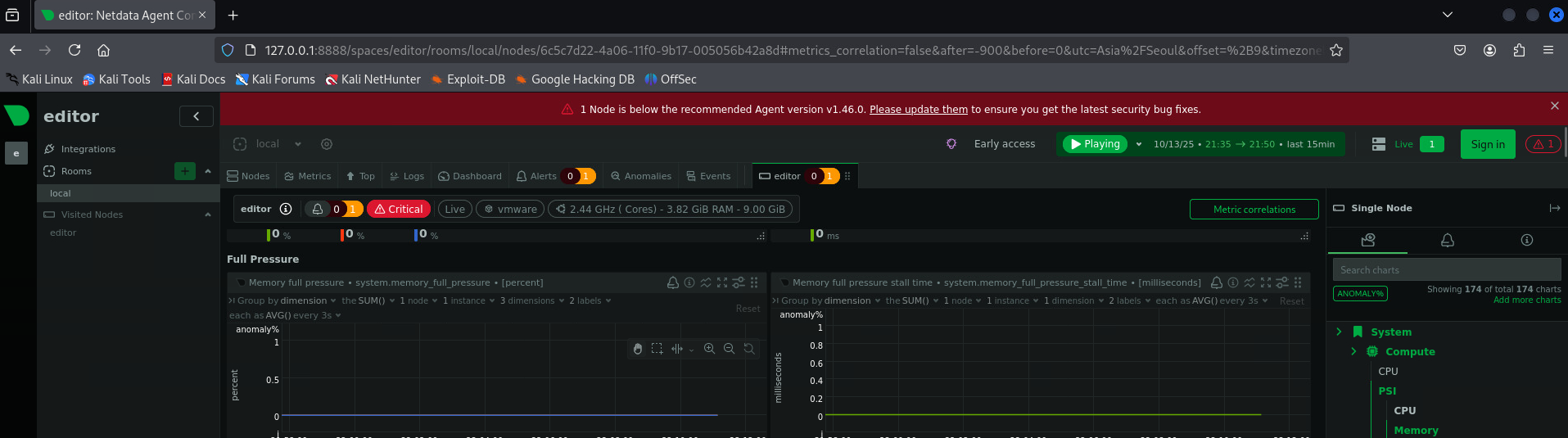 1 Node is below the recommended Agent version v1.46.0. Please update them to ensure you get the latest security bug fixes.